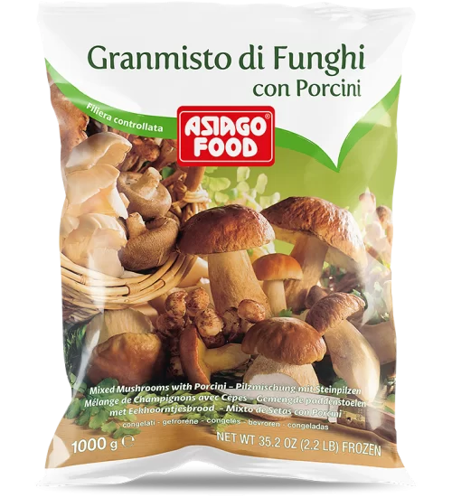 Raccolti a mano e selezionati all’origine da esperti micologi, i nostri funghi sono lavorati entro poche ore dalla raccolta per preservarne le pregiate qualità organolettiche. Oltre al prelibato porcino, la gamma di funghi Asiago Food comprende altre varietà silvestri o coltivate e deliziosi misti di funghi sapientemente miscelati, puliti e tagliati per un pratico utilizzo in cucina.