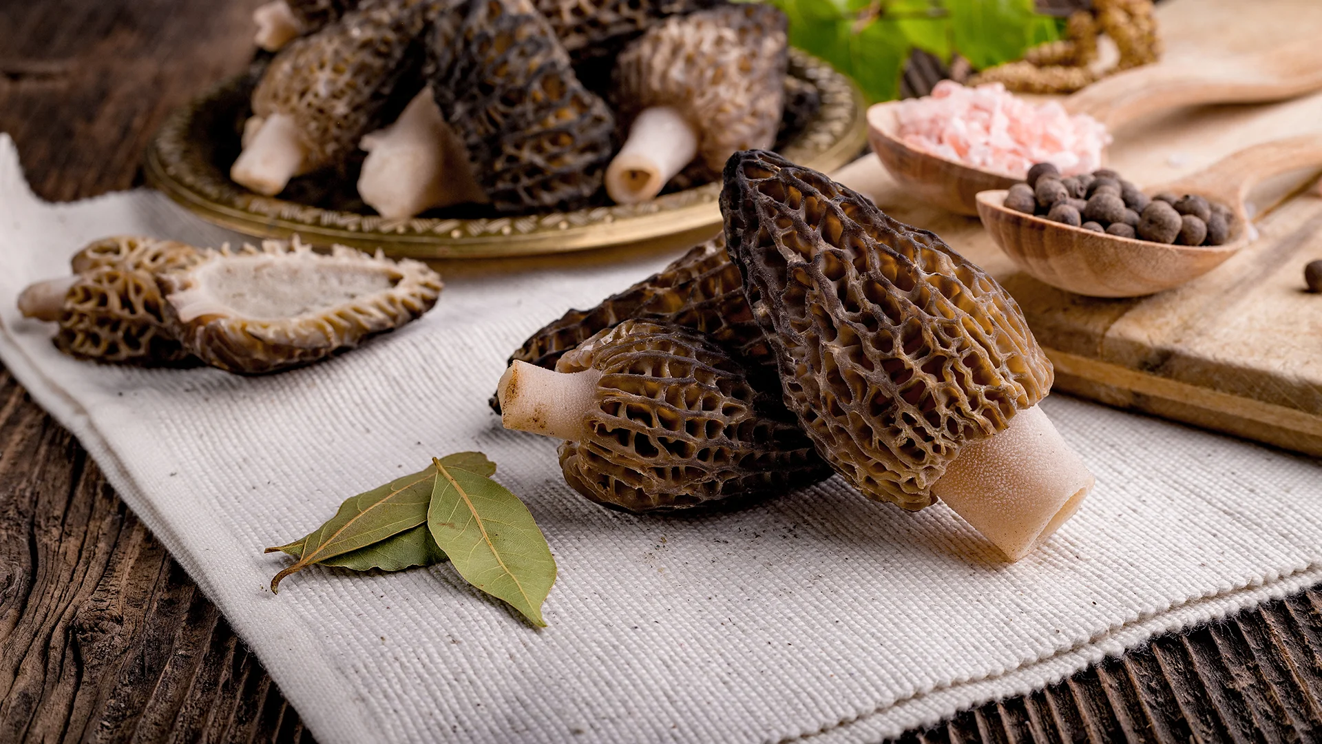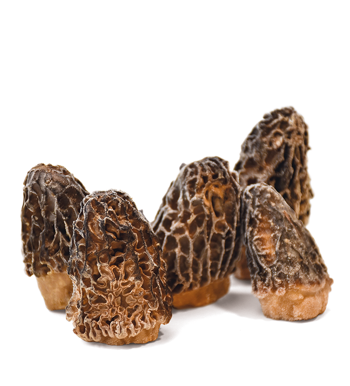 Morels (Morchella conica). May contain traces of gluten, soybeans, celery, mustard.