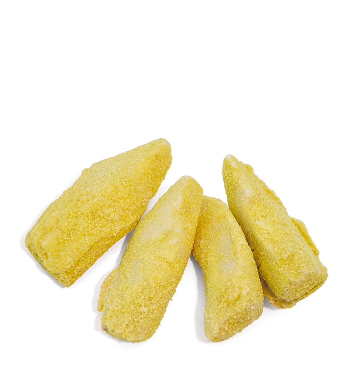Our IQF breaded artichokes are prepared with selected vegetables and offer a convenient and tasty solution for the discerning catering professional. Golden and crispy, they are perfect as finger food during an aperitif, as an appetizer or as a tasty side dish. They are ready to fry and serve in just 5 minutes. After cooking, the product is dry and crispy and, thanks to the eggless batter, can be enjoyed even by those who follow a vegan diet.