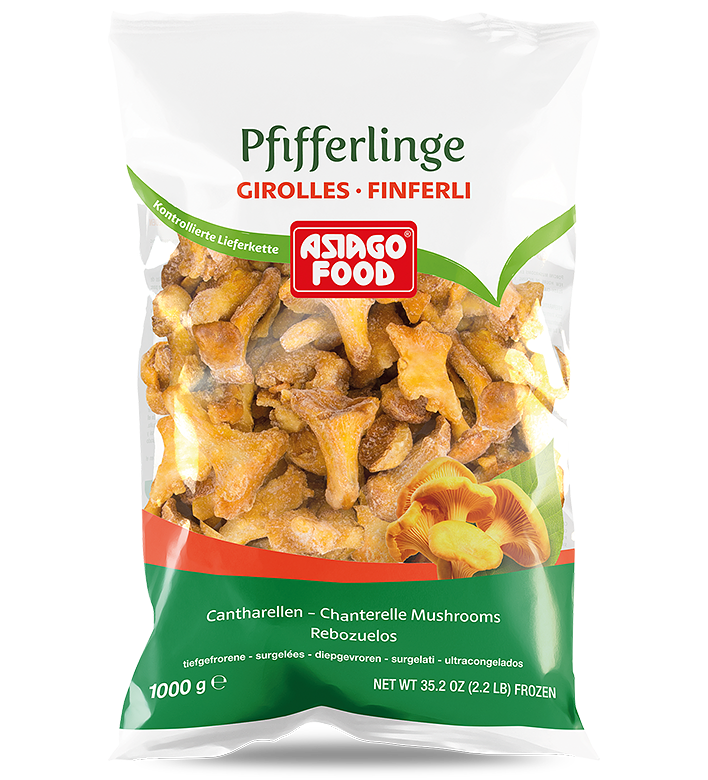 Asiago Food frozen chanterelles are natural products of excellent quality, already cleaned and ready for cooking. You can use them to season risottos or egg pasta dishes, to stuff omelets, lasagna, crepes, focaccia and pies, to accompany polenta and main courses of meat and fish. They are also perfect sautéed in a pan with extra virgin olive oil, chili peppers, shallots and a sprig of thyme, a few cherry tomatoes and some chopped parsley.