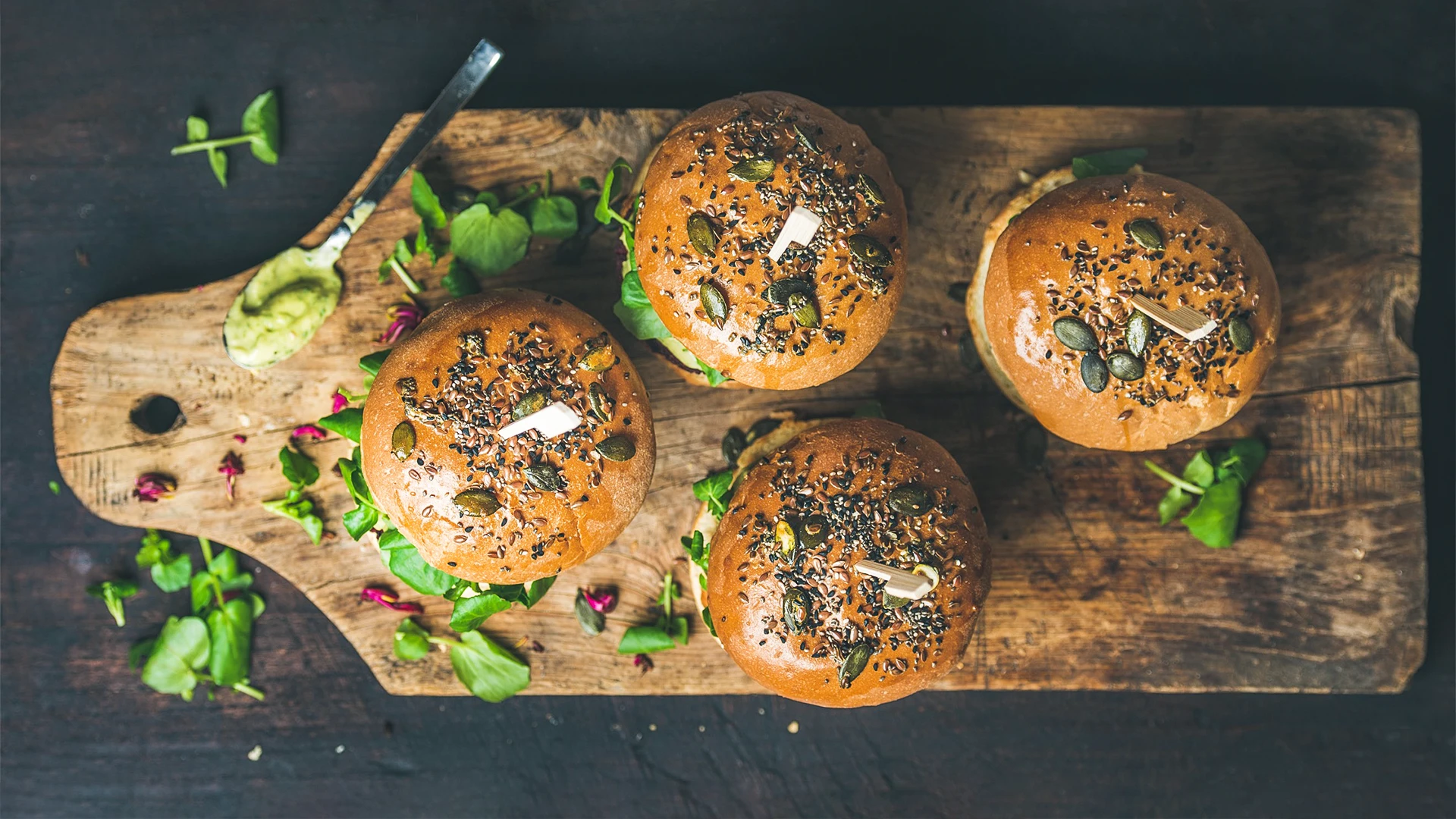 In the oven (preheated to 180 °C): place the frozen burgers on a baking sheet lined with parchment paper and bake them for 5 minutes or until they reach the desired level of browning.