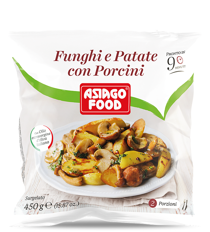 Grilled potatoes 60% (potatoes, salt), sautéed mixed mushrooms 35% [mushrooms in varying proportions: nameko mushroom (Pholiota nameko), shiitake (Lentinula edodes), oyster mushroom (Pleurotus ostreatus), champignon (Agaricus bisporus)], porcini (Boletus edulis and related group) 5%, extra virgin olive oil* 2%, sunflower oil, rice starch, parsley, garlic, salt, pepper. May contain traces of gluten, milk, eggs, soybeans, celery, mustard.