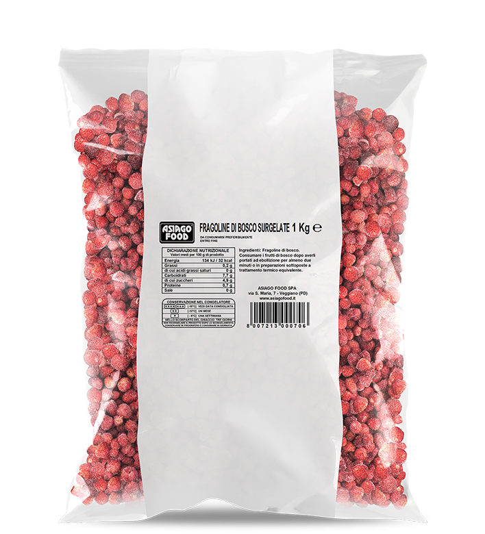 Wild strawberries selected and picked at perfect ripeness, cleaned and frozen using the IQF technique to keep all the properties of the freshly picked fruit intact. In the kitchen, wild strawberries lend themselves to endless recipes: use them to make delicious baked goods and spoon desserts, for homemade jams and fresh jellies, for sauces, ice creams and sorbets. Their sweet juice is also ideal for making fine liqueurs and cocktails.